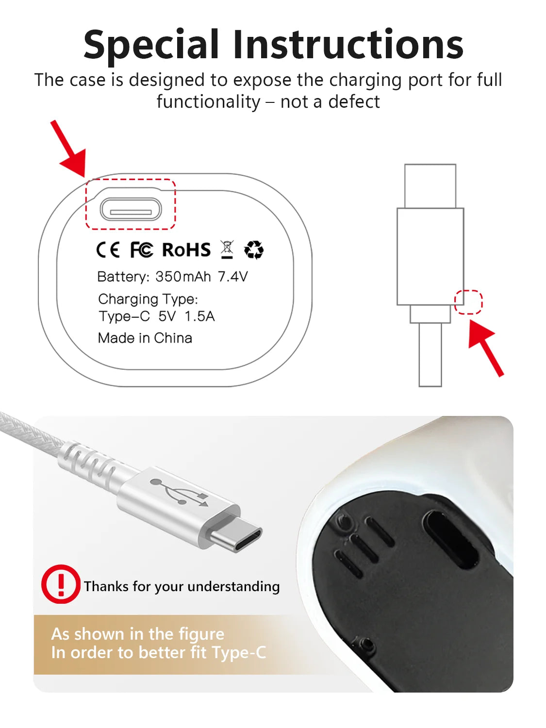 • Rechargeable: recyclable. No need to replace battery, Type-C charging interface.