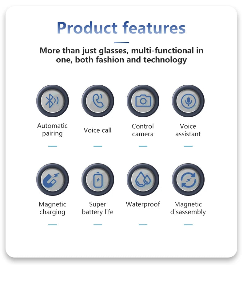 Hot GS05 Smart Glasses For Men 2 in 1 UV Protection Portable Polarized Anti-blue light Black Frame White Lenses Music Sunglasses