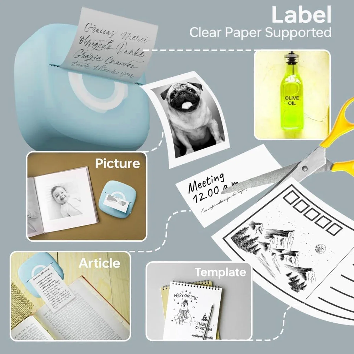 *The sticker printing paper is sent by random. It can be either white or blue-white as depicted in the photos. The printing side is white, and the back colour doesn't affect the printing results.