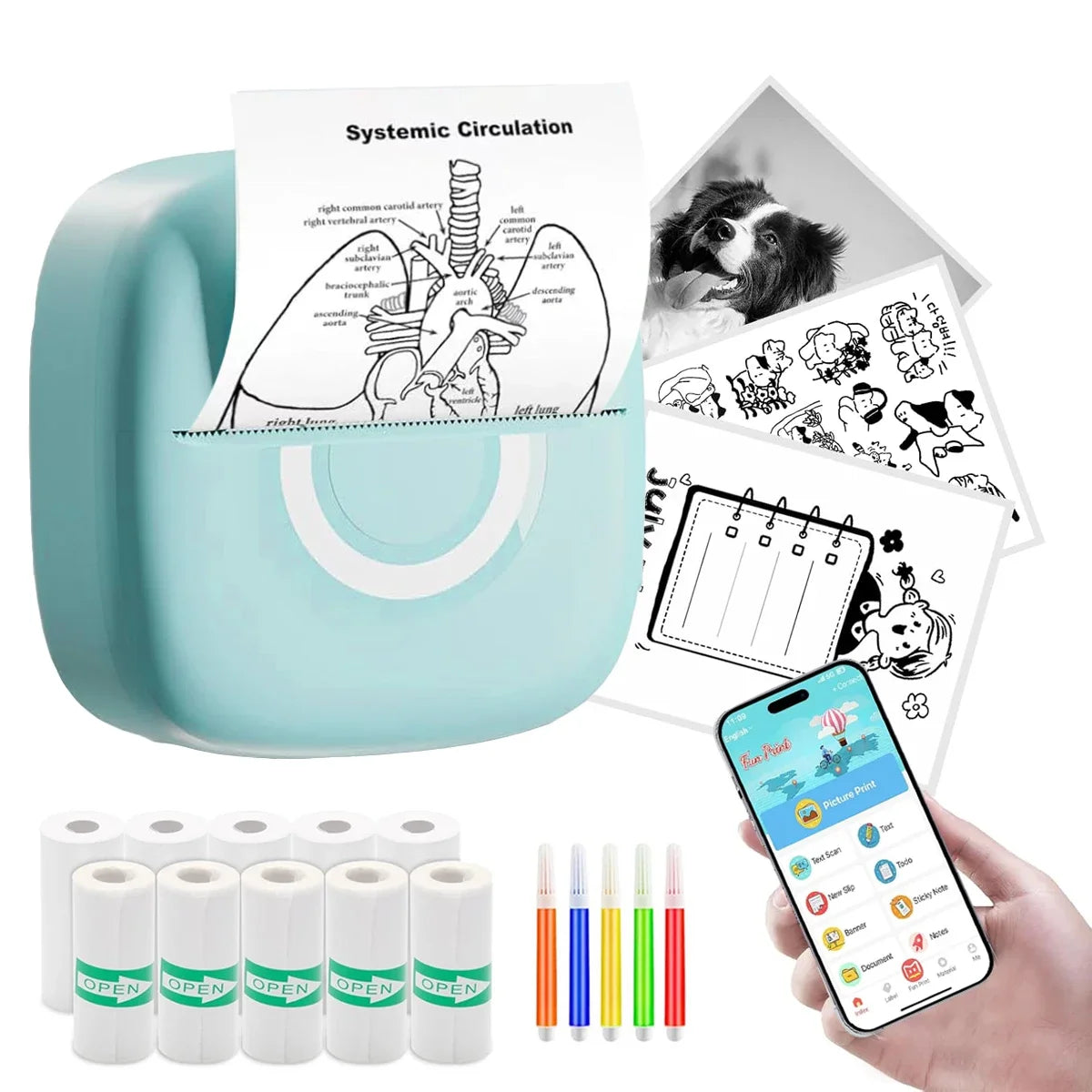 Specifications: Material: Durable ABS plastic Battery: Built-in 1200mAh lithium battery Resolution: High-quality 203dpi thermal printing Connectivity: Bluetooth BLE4.0 for wireless connectivity Supported Systems: Compatible with Android and iOS Print Media: Uses thermal paper for no-ink printing Features: |Mini Printer| **Portable Convenience** The Mini Pocket Printer is a revolutionary device that brings the convenience of printing on-the-go. Its compact design, featuring a durable ABS plastic build, ensures that it can withstand the rigors of daily use. The printer's built-in 1200mAh lithium battery provides ample power for printing without the need for constant recharging. With a resolution of 203dpi, the thermal printer offers crisp and clear prints, perfect for capturing memories and creating personalized labels or stickers. **Seamless Connectivity and Versatility** The Mini Thermal Printer boasts an impressive Bluetooth BLE4.0 networking mode, allowing for easy and stable wireless connectivity with both Android and iOS devices. This versatile printer supports a variety of printing scenarios, from label printing for organizing your belongings to photo printing for capturing precious moments. Its support for multiple languages, including Chinese, English, Korean, Japanese, Spanish, Portuguese, Russian, German, Italian, Thai, and Traditional Chinese, ensures that users from diverse linguistic backgrounds can enjoy the convenience of this printer. **Effortless Printing Experience** Setting up the Mini Thermal Printer is a breeze, thanks to its user-friendly app integration. For Android users, download the 'Fun print' app from Google Market, while iOS users can find it in the application market. Once connected, the printer is ready to print, whether it's for DIY photo books, personalized stickers, or quick notes. The thermal paper used in this printer eliminates the need for ink, making it an eco-friendly and cost-effective choice for your printing needs. With its compact size and lightweight design, the Mini Pocket Printer is the perfect companion for those who value convenience and portability.