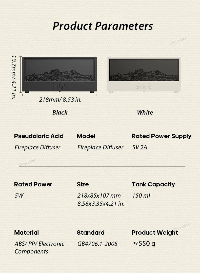 New Creative Fireplace Aroma Diffuser 150ml Waterless Auto-Off Colorful Flame Air Humidifier with Remote for Home Bedroom Gift