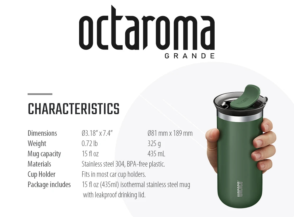 WACACO Octaroma Vacuum Insulated Coffee Mug, Double-wall Stainless Steel Travel Tumbler, 6/10/15 fl oz, thermo, Valentines Gift