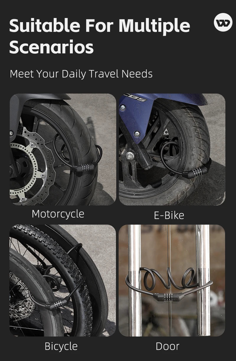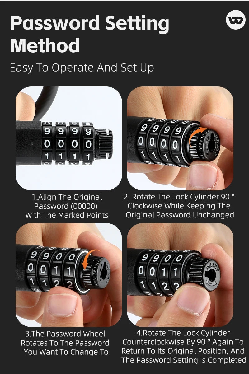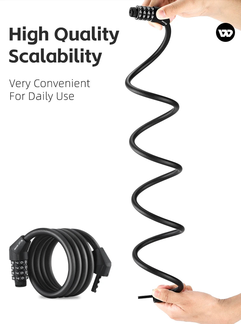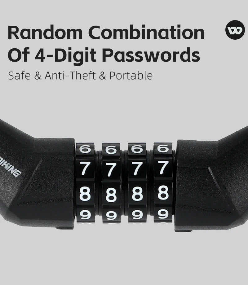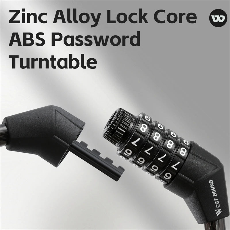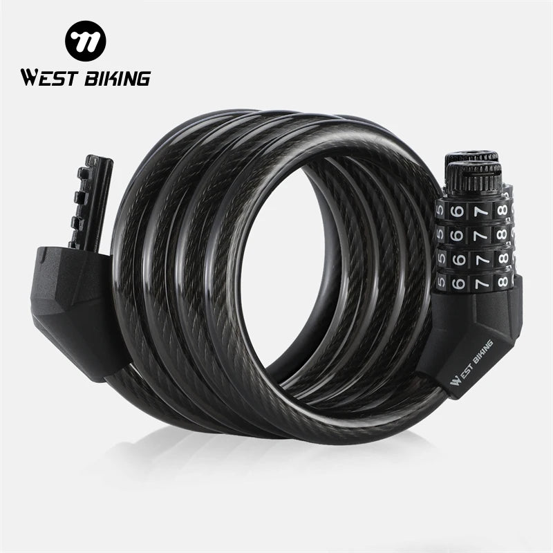 WEST BIKING Bicycle Lock 4 Digit Code 120cm Anti-theft Lock Bike Security Steel Cable Cycling Bicycle Lock Bike Accessories