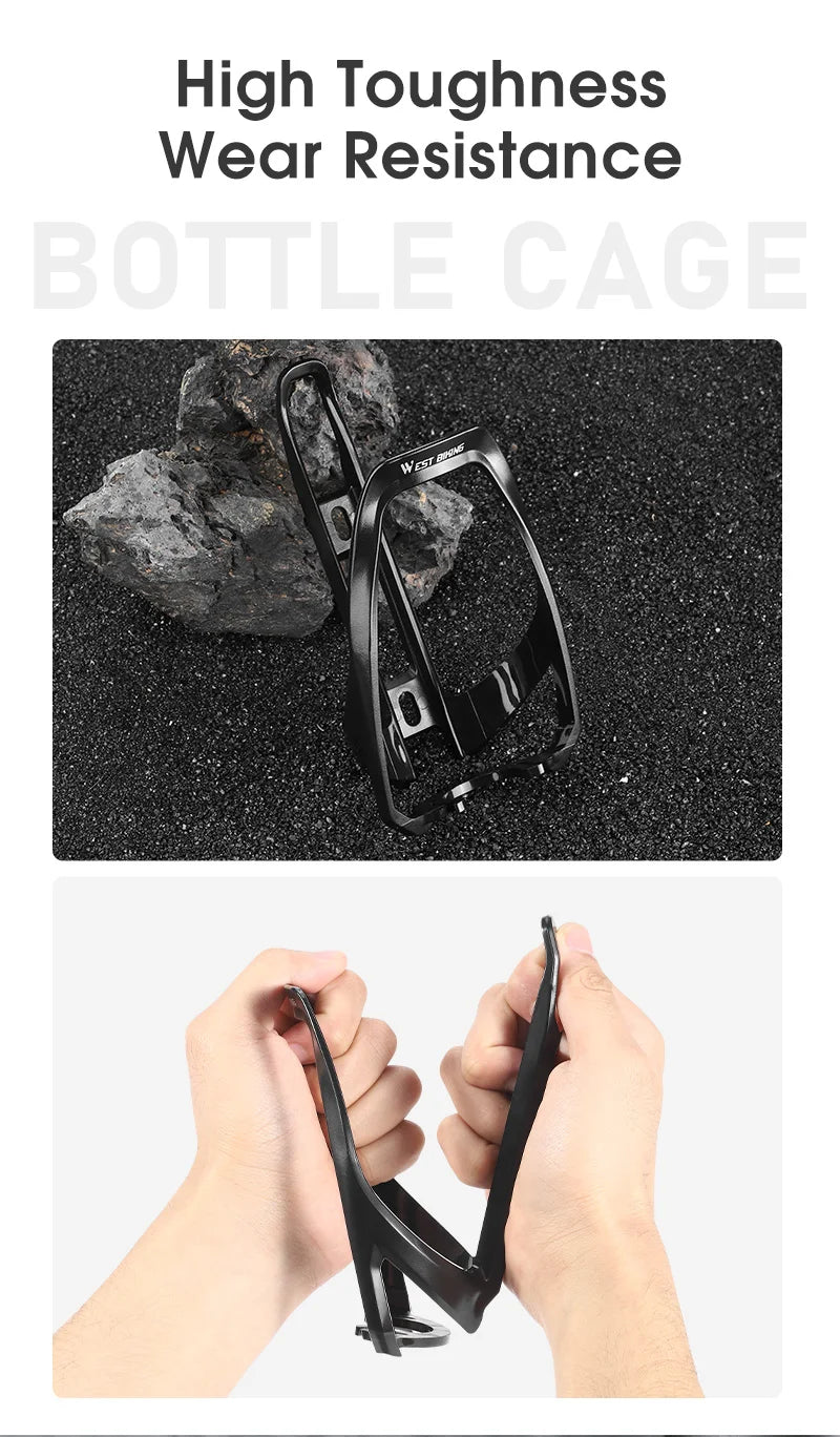 The WEST BIKNG Cycling Water Bottle Cage is the epitome of performance and durability. Crafted from PC+Fiberglass, this bottle bracket is designed to withstand the rigors of cycling while maintaining a minimalist profile that won't weigh you down. Its ergonomic, one-piece construction ensures a snug fit for your water bottle, preventing it from shifting or falling out during your ride.